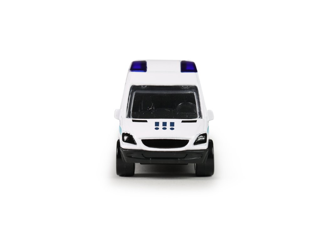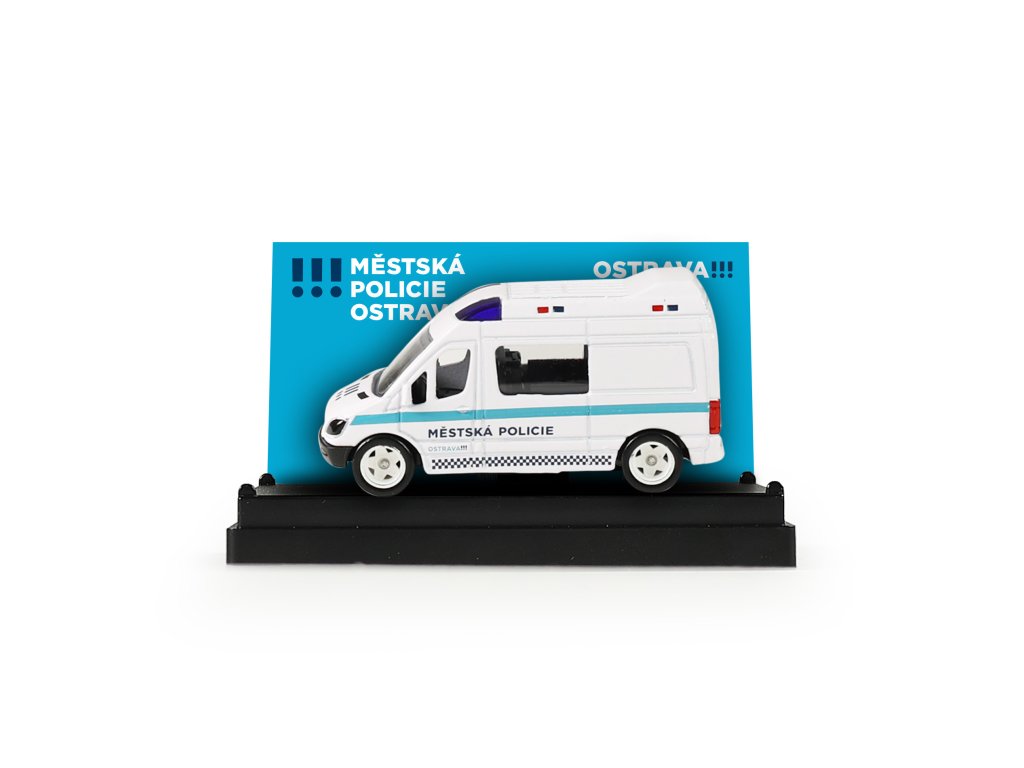 Rozšiř si svůj vozový park a pořiď si tuhle originální kovovou dodávku Městská policie Ostrava. Auto jezdí na volný chod a jeho délka je 7 cm.