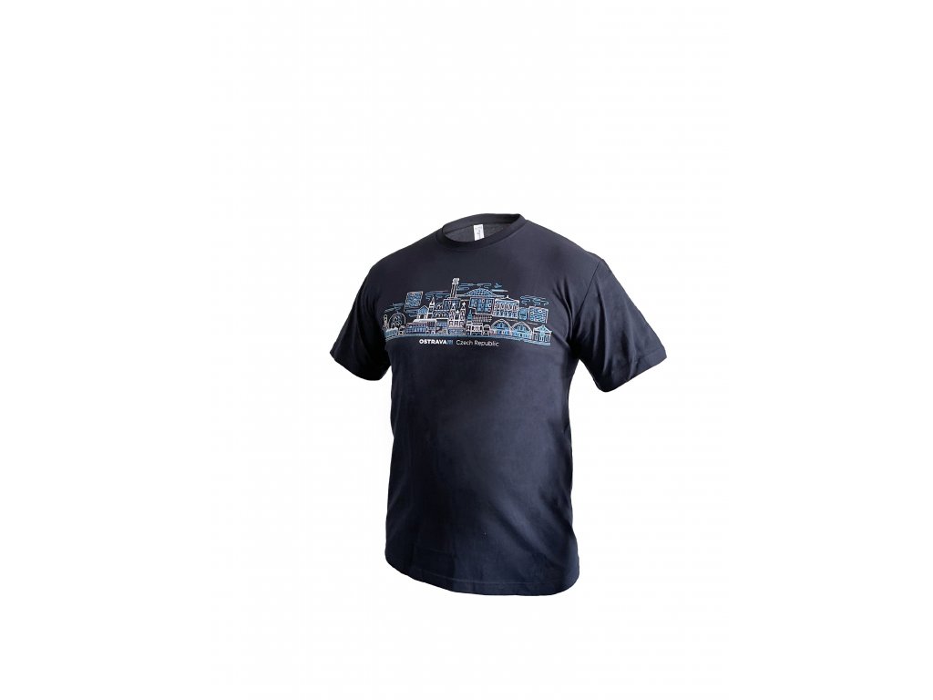 Bavlněné tmavě modré tričko s potiskem toho nejzajímavějšího a nejzásadnějšího, co dělá Ostravu Ostravou.